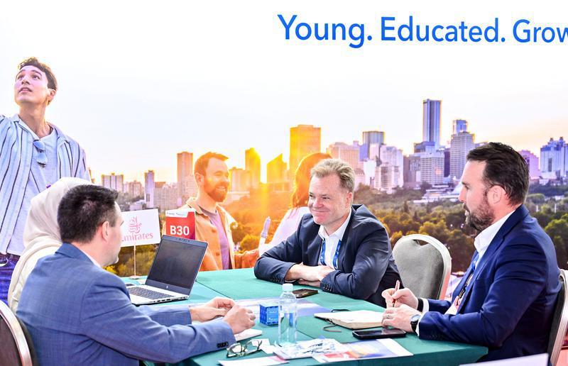 现场,来自阿曼航空的商业规划执行官Usama Al Balushi正在与机场工作人员洽谈,他告诉记者:“西安旅游文化资源丰富,也具有产业积淀,此次来参会是寻求更多合作可能性,希望能借此平台收获一些成果。”
