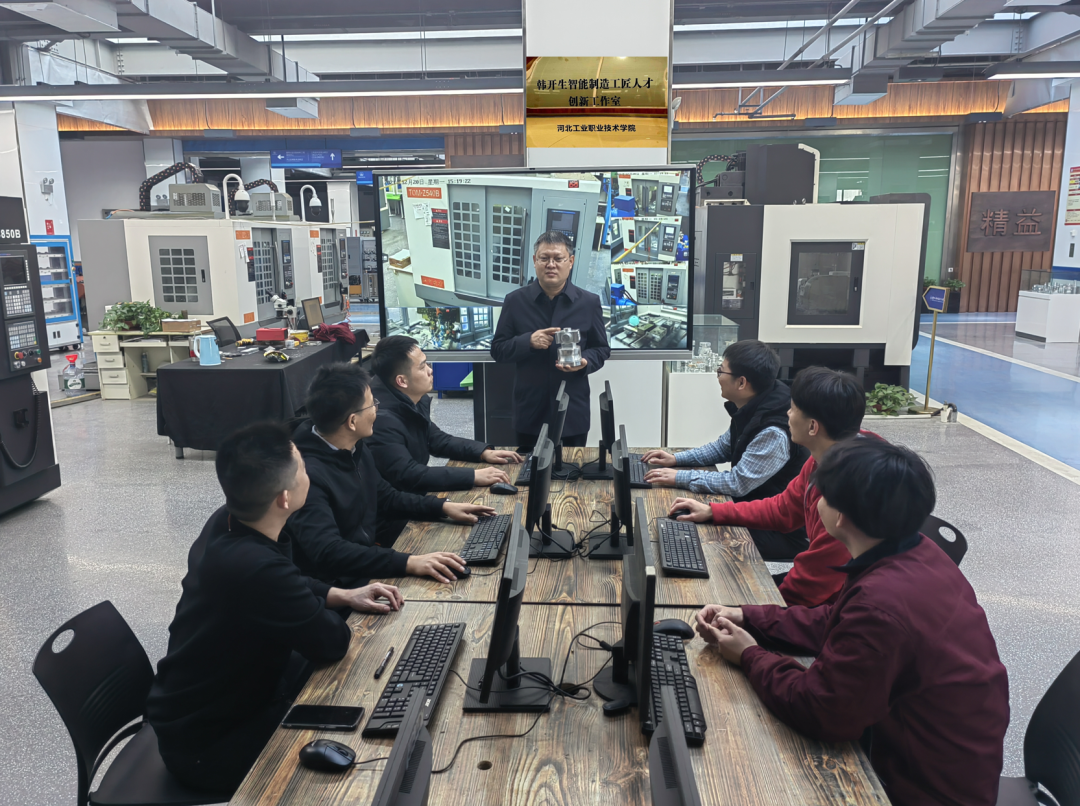 在学校智能制造实训中心,总能看到韩开生手把手指导学生的身影。机械制造及自动化专业毕业生王硕至今记得,大三那年参与企业真实生产项目时,自己在刀具调试环节屡屡出错,一度想要放弃。韩开生没有简单批评,而是带着他拆解零件、分析工艺,从原材料特性讲到切削参数设置,甚至陪着他在实训场反复试验到深夜。“韩老师不仅教我们怎么操作机床,更教会我们要像对待艺术品一样对待每一个零件。”正是这份细致入微的指导,让王硕毕业后迅速成长为企业技术骨干,还获评“河北省技术能手”。