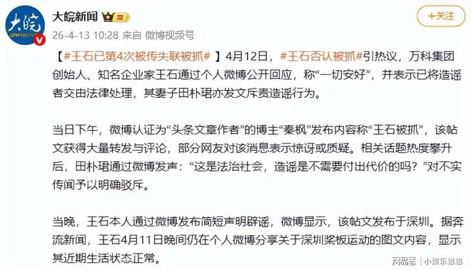 此次“被抓”传闻出现后,王石本人也在第一时间更新了动态