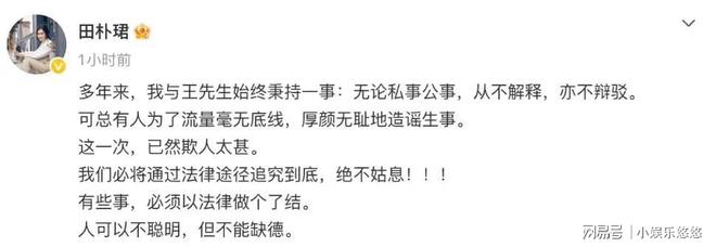 田朴珺也发文隔空向王石温情喊话,说没事,她来养。
