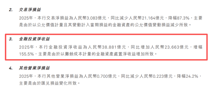 更值得关注的是,该行金融投资净收益从上年度的较低基数大幅增长至约17亿元,同比增幅高达155.5%。这种依靠投资收益“撑门面”的增长模式能否持续,无疑是悬在这家银行头上的一个巨大问号。