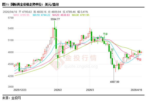 今日周四(4月16日)亚盘时段,黄金价格冲高后回落,最新黄金价格走势报4810.71美元/盎司,上涨20.33美元/盎司或0.42%,日内最高上探至4838.16美元/盎司,最低触及4789.46美元/盎司。国际黄金的短线支撑聚焦于4780美元/盎司,此处既是5周期均线与30周期均线的共振支撑区域,也是本轮短期上涨趋势的关键防守阵地;上方阻力则汇聚于4850美元/盎司,一旦成功突破,金价有望重拾涨势,向4900美元/盎司大关发起冲击。