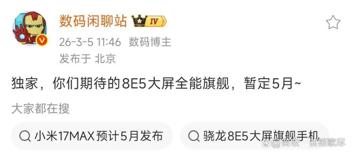目前小米17 Max的发布时间暂定在5月,原因是要给红米K90至尊版让路,这下米粉不乐意了!