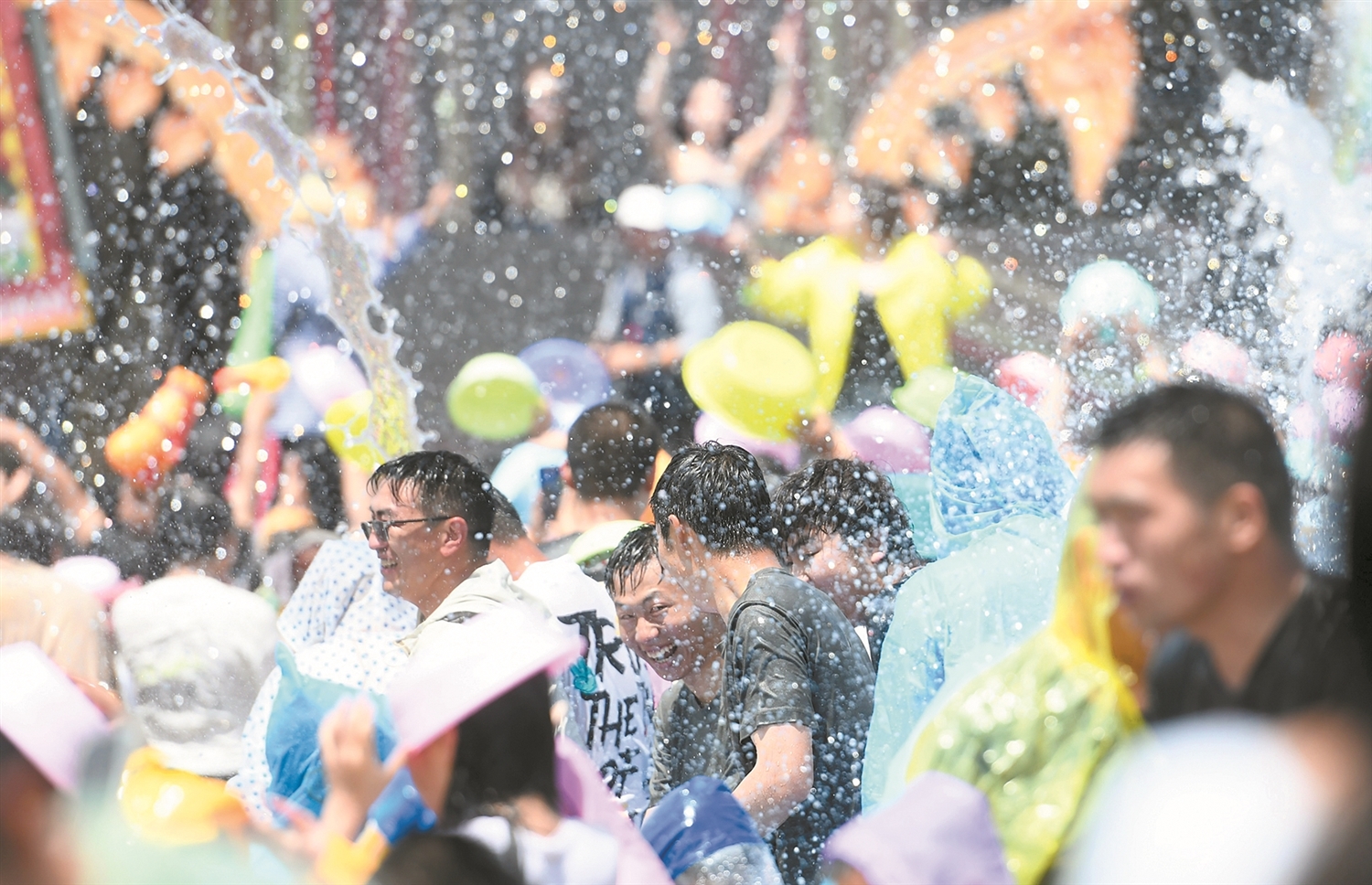 4月11日起,云南多地陆续开启泼水狂欢。在西双版纳景洪市泼水广场,旅游博主“昆明老外史蒂夫”端着水盆冲进人群;不远处,专程赶来的爱尔兰游客凯文浑身湿透,笑着说:“比我想的还好玩。”