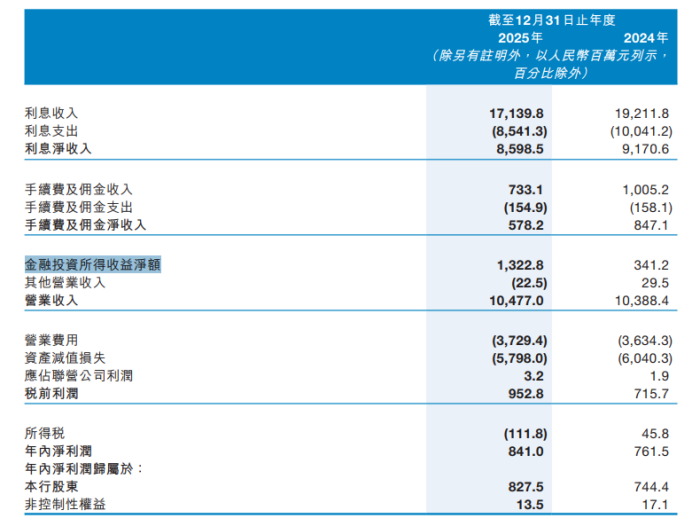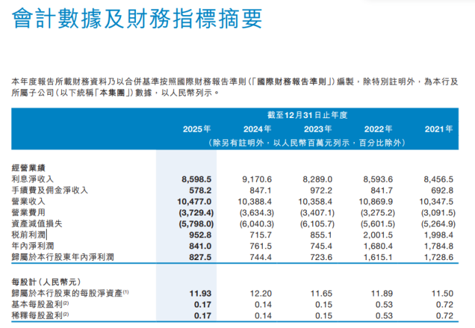 日前,九江银行(06190.HK)披露了2025年度业绩报告。表面上看,该行实现营业收入104.77亿元,同比增长0.85%;净利润8.41亿元,同比增长10.44%,“双增”格局延续。