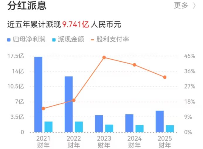 年报数据显示,九江银行2025年拟按每10股0.56元(含税)派发现金股息,合计约1.59亿元,占归母净利润的比例高达32.45%。而在2023年、2024年九江银行的现金分红比例高达44%、39.7%,这样高的分红水平在上市银行业内绝对是首屈一指,连素来被认为业内高分红典范的招商银行,现金分红比例在近三年也未超过34%。
