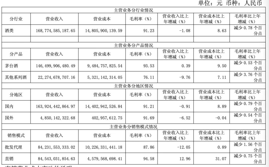 △贵州茅台直销渠道收入为845.43亿元,超过批发代理渠道。
