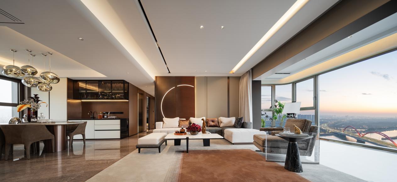 约9.4米跑道式观景阳台,串联客厅与次卧,既承载着瞰景赏园的诗意日常,也预留了充足的家政功能空间。