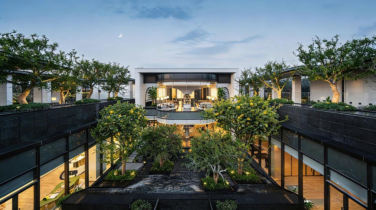 园内打造约7米层级叠瀑、近300㎡环形水幕,整体水景面积超1000㎡,移步异景,四季皆景。