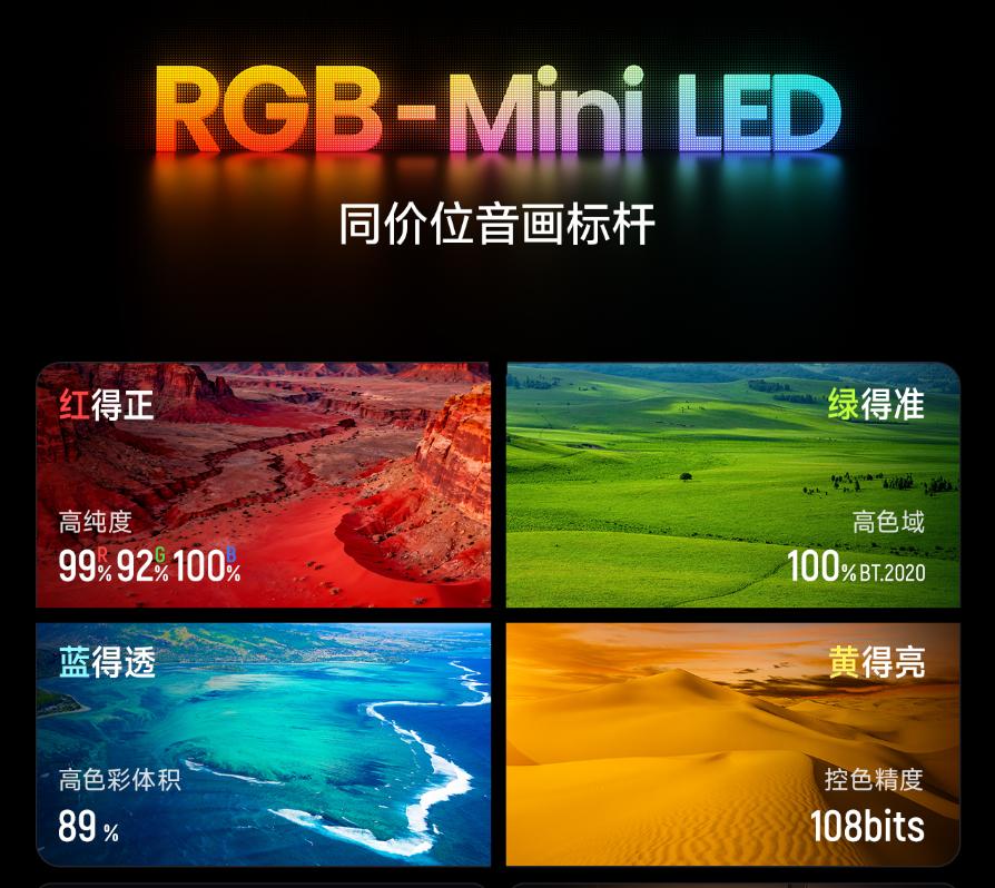 其采用的车规级高效RGB芯片,寿命突破16万小时,即使每天看12小时,也能保证15年不色衰,观感惊艳如一。并且,通过从源头避开有害蓝光波段,长时间观看眼睛依然舒适,告别看电视焦虑。