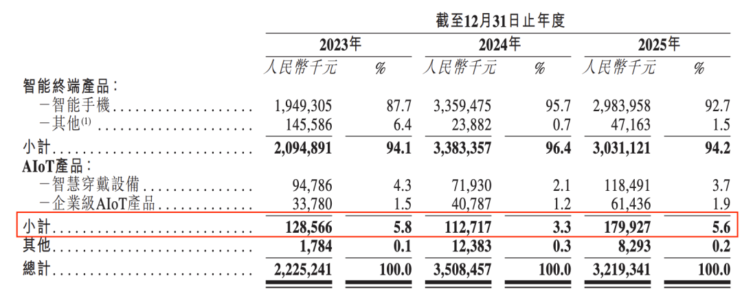另外,若将其放在公司整体业务框架中来看,其AIoT业务的体量仍然较小,2025年AIoT收入占比仅为公司营收入的5.6%。