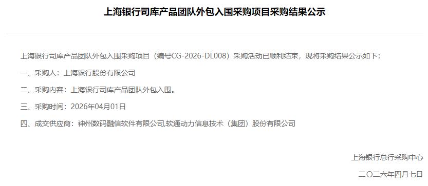 近日,上海银行司库产品团队外包入围采购项目公示中标结果。