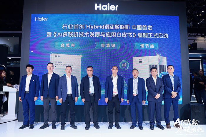 海尔除展示了AI多联机外,还发布行业首创的Hybrid混动多联机,并联合权威机构启动《AI多联机技术发展与应用白皮书》的编制,意图从技术和标准双重维度引领行业。