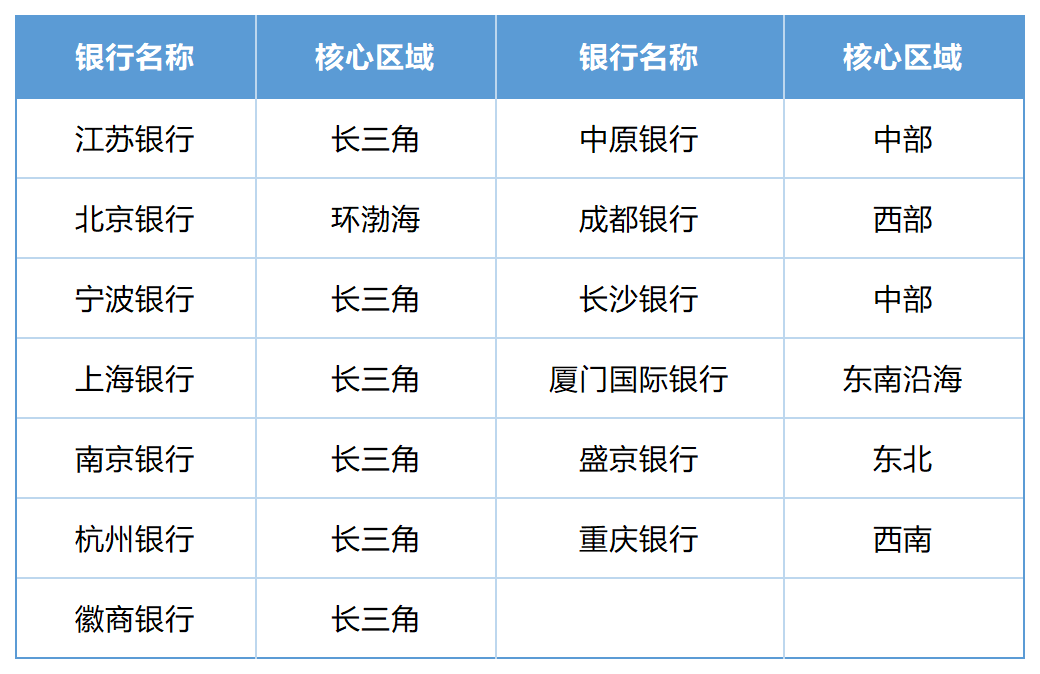 2012年:北京银行,2014年:上海银行,2015年:江苏银行,2016年:南京银行,2017年:宁波银行、徽商银行、盛京银行,2019年:杭州银行,2021年:厦门国际银行,2022年:中原银行,2023年:成都银行、长沙银行。