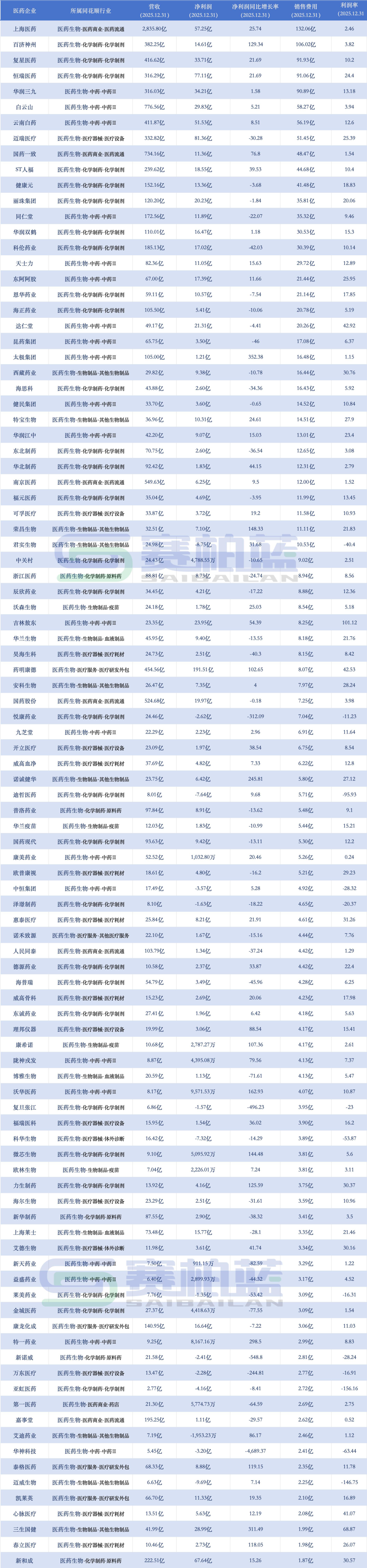 附:A股168家医药企业业绩表现(数据来源:同花顺问财;数据统计截至2026年4月18日;制图:赛柏蓝)