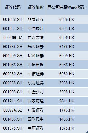 目前全市场共有13家“A+H”上市券商,分别为华泰证券、中国银河、申万宏源、光大证券、招商证券、中信建投、中信证券、东方证券、中金公司、国泰海通、广发证券、国联民生、中原证券。