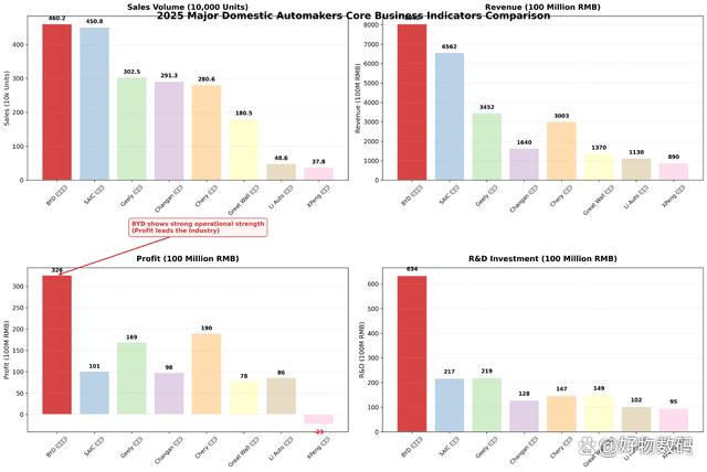 随着2025年国内主流上市车企财报悉数披露,中国汽车行业的年度格局正式落定。在电动化与智能化转型的浪潮中,头部车企的竞争优势持续放大,比亚迪凭借销量、营收、利润、研发四大核心指标全面领跑,成为中国车企跻身全球顶尖阵营的标杆,更以实打实的业绩展现强大的经营实力。