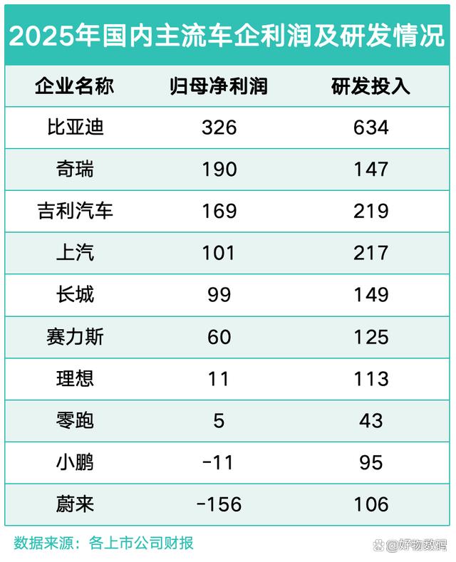 盈利质量是企业健康发展的核心标尺,2025年国内车企业绩分化明显。比亚迪以326亿元的归母净利润蝉联行业第一,盈利规模远超奇瑞(190亿元)、吉利(169亿元)、上汽(101亿元)等对手,成为国内盈利能力最强的汽车企业。对比新势力车企小鹏、蔚来的亏损状态,比亚迪的盈利韧性更显突出,也进一步印证了其全产业链布局带来的成本与效率优势。