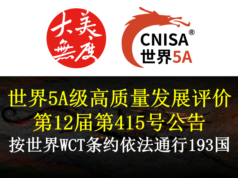 大美无度世界5A级高质量发展评价第12届第415号公告