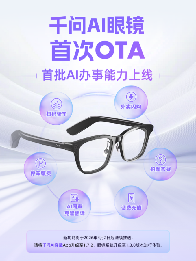 千问 AI 眼镜作为消费级硬件核心落地,首发 S1、G1 两大系列,搭载最新千问大模型,响应快、交互流畅,支持高精度多模态理解与实时交互,覆盖高清拍摄、AI 翻译、会议记录、识图识物等场景,从 “看得见” 升级为 “办成事”,验证 AI 硬件从专业工具走向日常伴侣的趋势。
