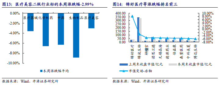医药生物行业本周市盈率中值降至38.3X,锦好医疗+8.23%、锦波生物-2.99%、梓橦宫-5.24%涨跌幅排名前三。(医药生物包含医疗器械、化学制药、中药、生物制品、医疗美容)