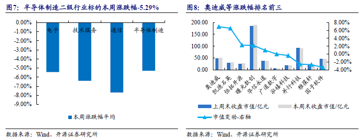 本周高端装备、信息技术、化工新材、消费服务、医药生物五大行业平均涨跌幅分别为-6.35%、-6.17%、-5.68%、-6.70%、-5.92%。高端装备行业本周市盈率中值降至40.7X,信息技术行业本周市盈率中值降至93.5X,化工新材行业本周市盈率中值降至44.4X,消费服务行业本周市盈率中值降至55.8X,医药生物行业本周市盈率中值降至38.3X。