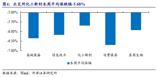 本周(2025年9月22日至2025年9月26日,下同)高端装备、信息技术、化工新材、消费服务、医药生物五大行业平均涨跌幅分别为-6.35%、-6.17%、-5.68%、-6.70%、-5.92%。