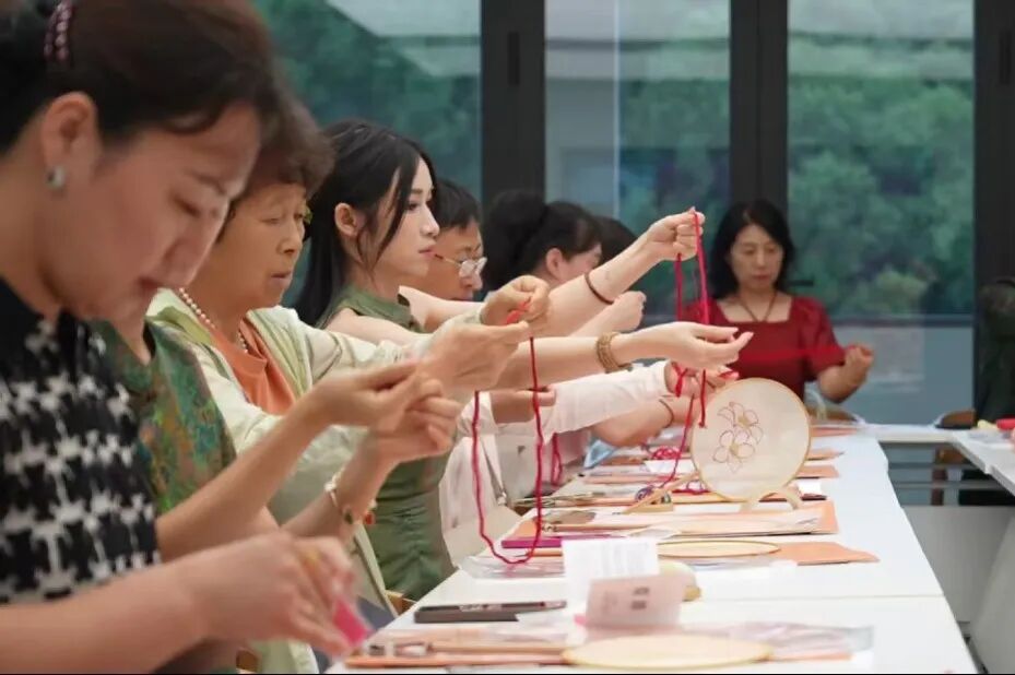 在互动体验区,客户在专业老师指导下尝试飞针走线。丝线在指尖穿梭,匠心与温度跃然纸上。亲手体验非遗技艺的过程中,客户不仅感受传统文化的魅力,更领略到代代相承的工匠精神。