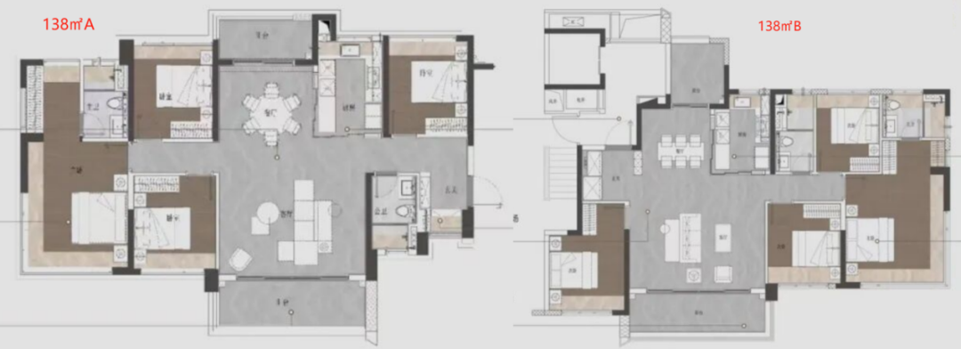 128㎡和138㎡A(高层)户型,方向相反,布局基本一样。
