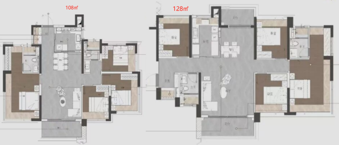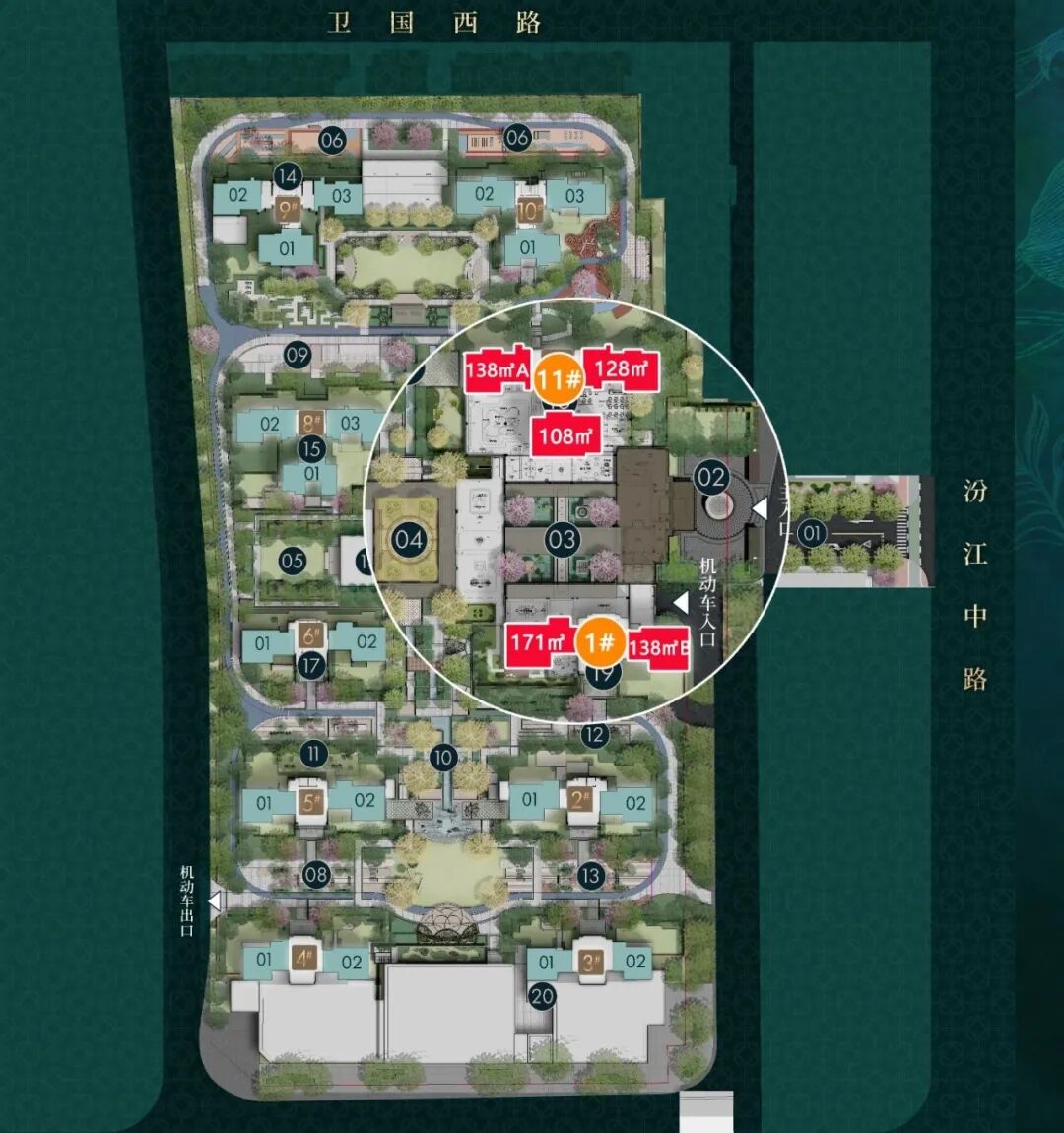 其中,北边的高层有108、128、138㎡三个户型产品。