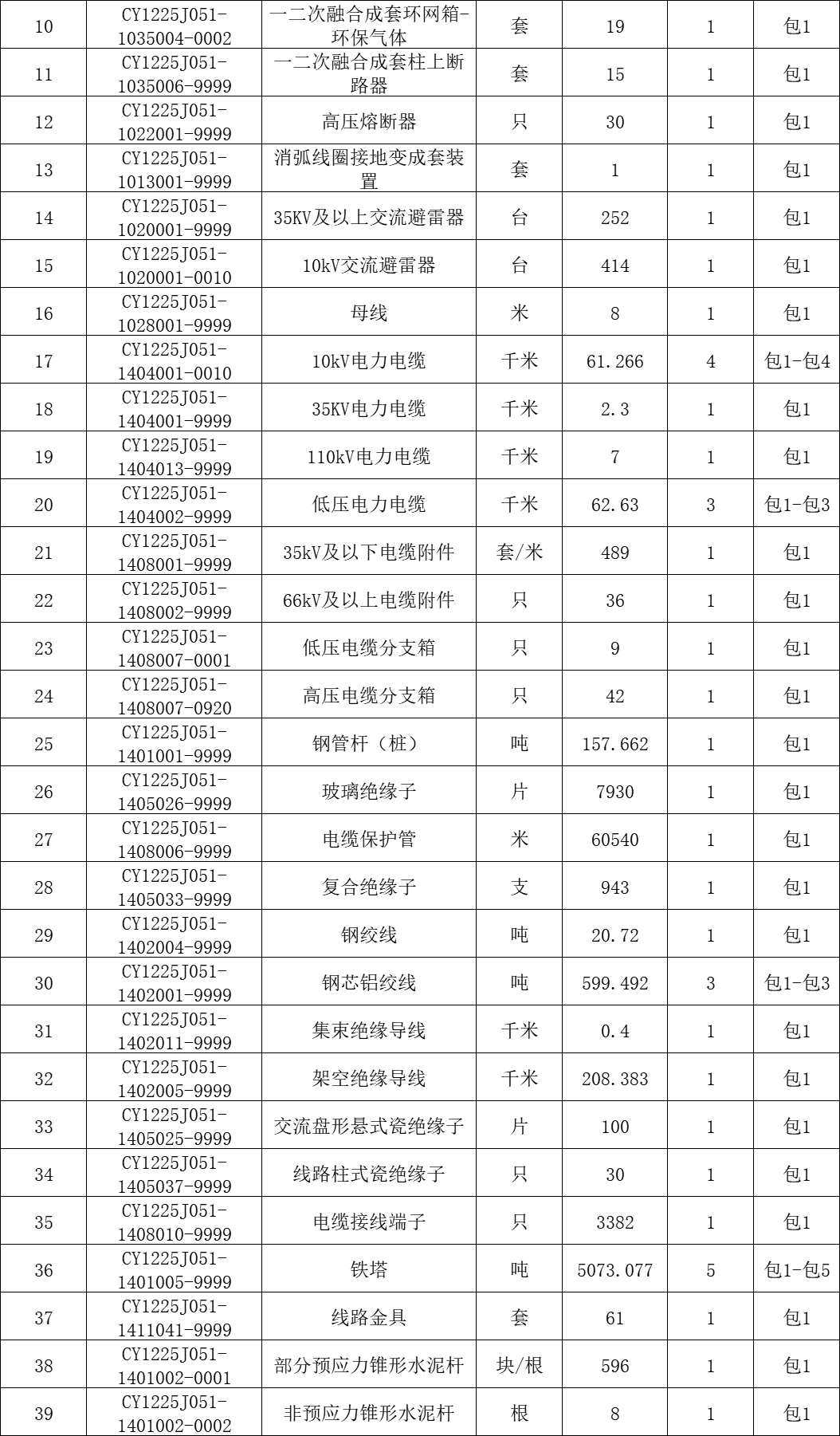 投标产品:10kV电力电缆、低压电力电缆、架空绝缘导线、集束绝缘导线、控制电缆