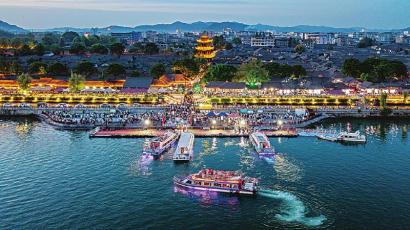 交旅融合玩出新花样。嘉陵江畔的阆中水城,摩托艇风驰电掣、“水上超跑”贴水飞行与皮划艇、桨板的悠然相映成趣。自运营以来,“阆中水城游”航线累计接待游客近200万人次,入选交通运输部“国内水路旅游客运精品航线试点”。