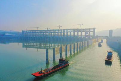 岷江龙溪口航电枢纽船闸通航现场。