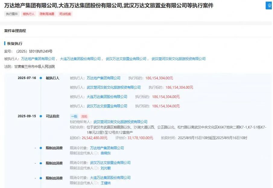 频繁的资产处置,是万达应对巨额债务压力的无奈之举。天眼查App信息显示,截至目前,大连万达集团股份有限公司存在多条被执行人信息,被执行总金额累计已超过50亿元。此外,其持有的多家核心子公司股权也处于冻结状态,涉及金额高达百亿级别。