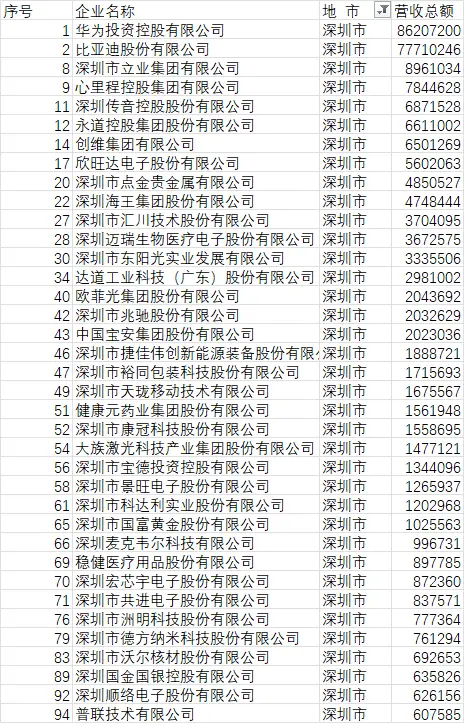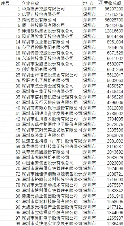 华为、比亚迪、腾讯三家深圳企业包揽前三强,并且排名前50的企业中有25家来自深圳,占比达50%。数据让人让人直观感受深圳民营企业高质量发展的生动实践。