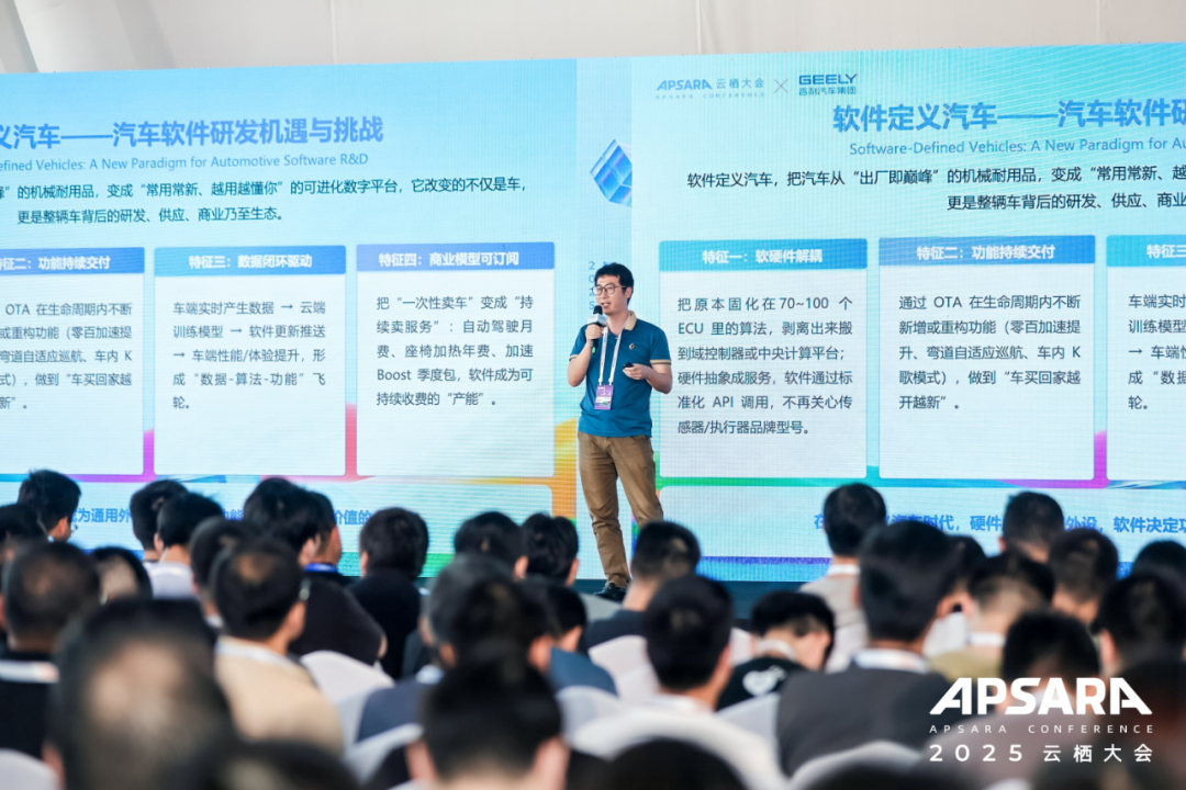 这家企业是吉利汽车。在“软件定义汽车”的背景下,汽车从过去的机械产品转向数字化平台,带来了组织、研发和商业模式的全面变革。软硬件解耦、功能持续交付、数据闭环驱动以及订阅化的商业模式,正在深刻改变汽车产业。对于车企而言,这意味着技术链重塑、研发流程重构以及组织和人才结构的全面转型。软件开发的成本与比例持续上升,用户需求从性能转向体验,集中化架构与车路协同等技术也在不断推动这一转变。