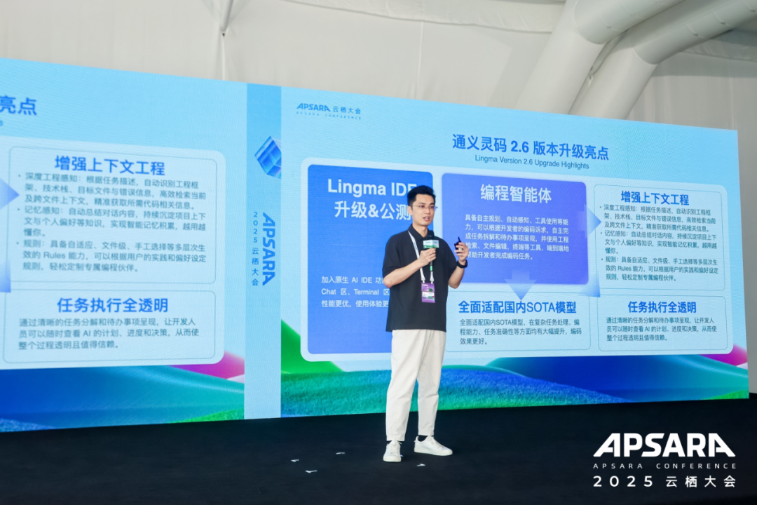 毫无疑问,Agentic LLM 的发展与应用场景的拓展将重塑研发流程。未来,AI 完成 80%需求已成业界共识,而 IDE、终端与浏览器也会趋于融合,形成统一的研发入口,推动体系一体化与优化。云端异步执行将成为主流,开发者能够一次性提交大量任务,由沙盒环境并行处理,最后统一验证成果。与此同时,研发范式将逐步从“人主导、AI 辅助”过渡为“AI 主导、人把关”。尽管短期内 AI 仍无法独立承担交付结果的责任,但随着上下文管理与验证闭环的不断完善,程序员将逐渐从具体的编码劳动中解放出来,更专注于质量把控与策略制定。在这样的趋势下,通义灵码希望成为帮助开发者驾驭 AI 的核心武器,帮助每一位开发者成为真正具备广阔横向能力和深度纵向掌控力的“T 型”人才。