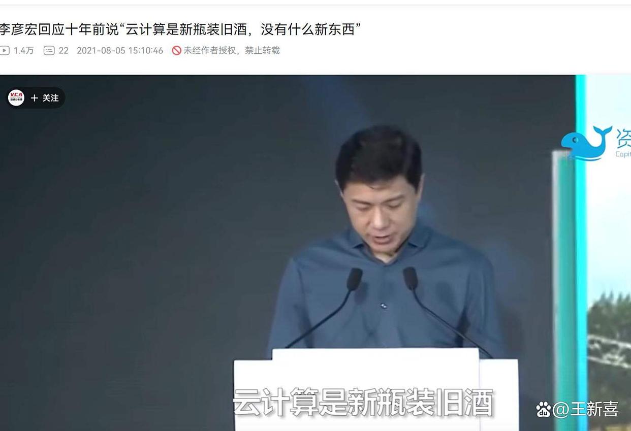 2009年,在国内云计算领域一片荒芜的时候,阿里云计算系统“飞天”立项了。百度的李彦宏认为“云计算,不客气一点讲它是新瓶装旧酒,没有新东西。”