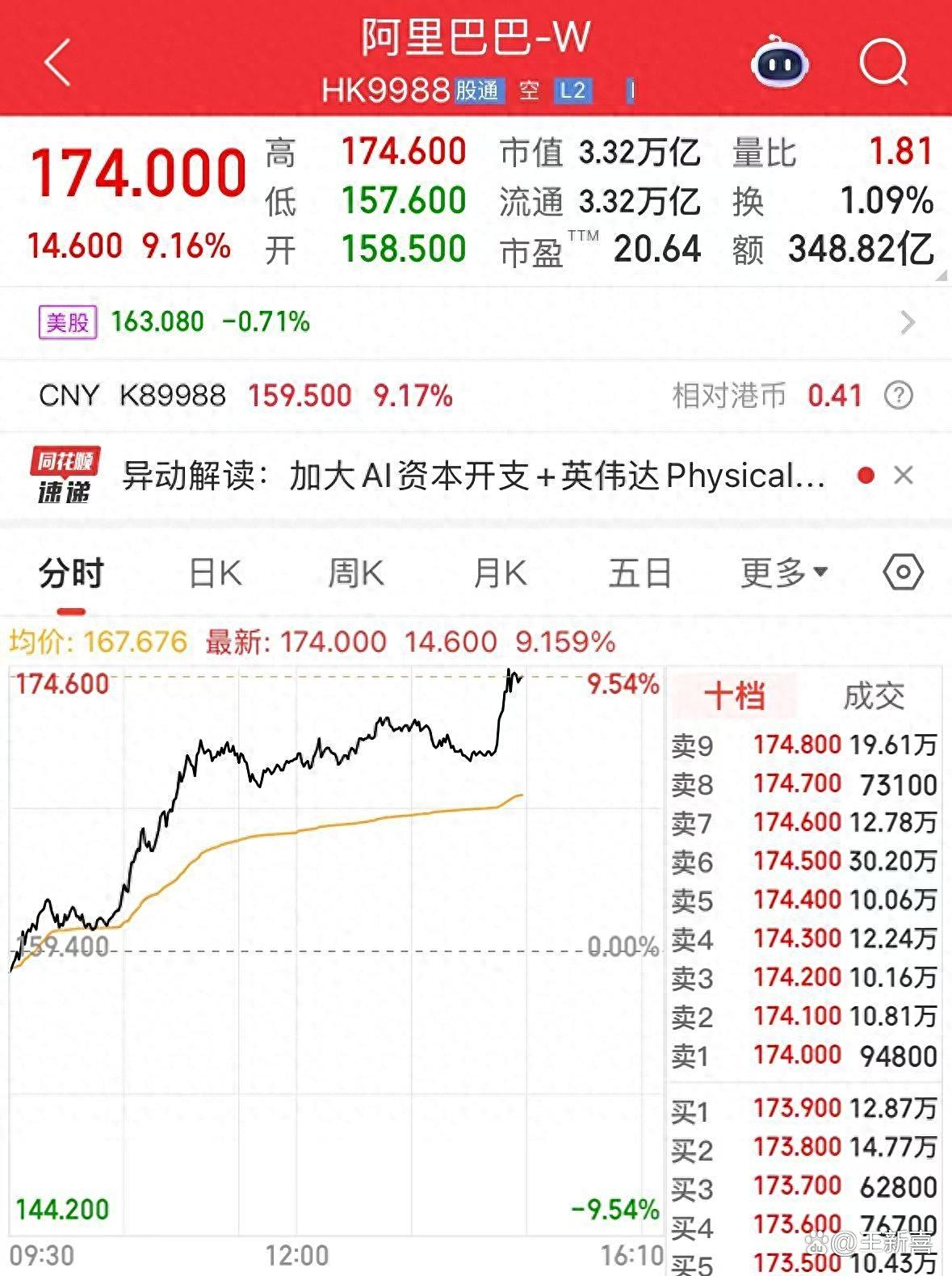 从阿里的布局与逐渐回归状态的马云来看,马云今年频频现身阿里巴巴公司,也实际参与了部分业务的决策,这就是创始人的作用,带来的正面作用显而易见,战略愈加清晰,股价上涨背后,是阿里的逻辑变了,未来的阿里,集齐芯片,算力,大模型,有没有可能成为美股英伟达,甲骨文,Open ai的集合体!我们拭目以待。