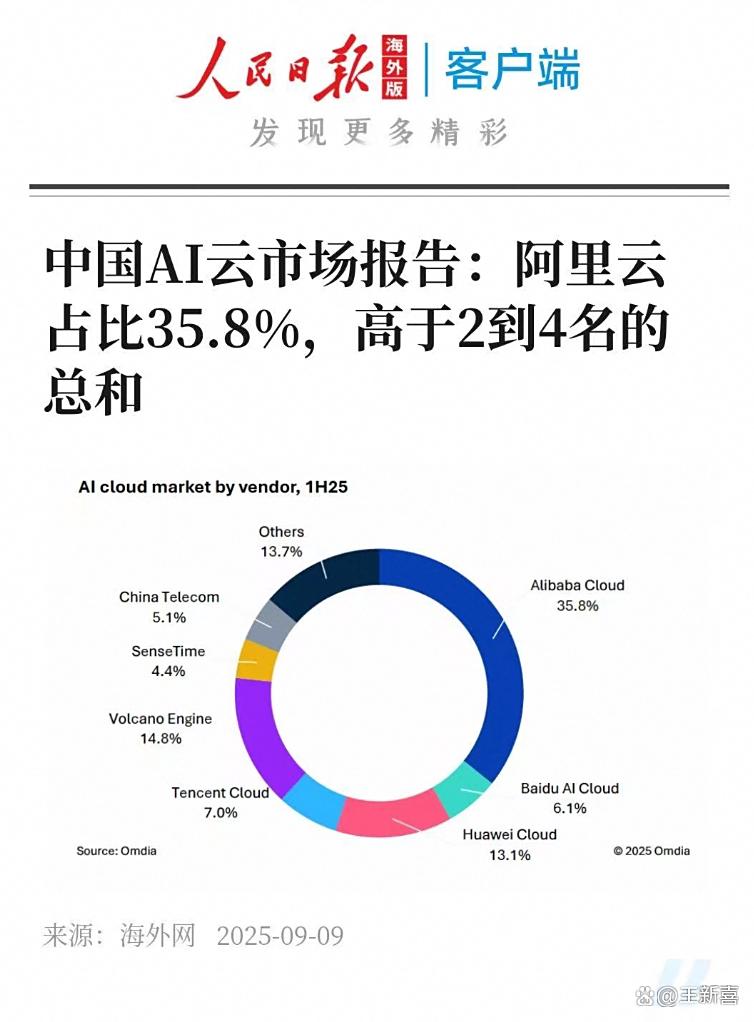 新一季财报里面,阿里云收入增速高达26%,创下了三年新高。omdia最新出的报告中也显示,从市场份额看,阿里云占到了35.8%,稳坐中国AI云第一宝座。这是个什么概念?