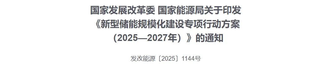 首先是《新型储能规模化建设专项行动方案(2025-2027年)》(1144号文),文件明确提出,到2027年,全国新型储能装机规模将突破1.8亿千瓦,带动投资规模高达2500亿元,并强调要完善新型储能等调节资源容量电价机制,建立容量补偿机制。