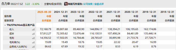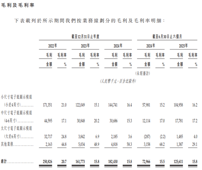 界面新闻查询数据看到,2022年至2024年及2025年上半年,合力泰旗下电子纸模组业务的毛利率分别是19.85%、18.76%、19.49%、19.89%,低于其2021年的22.32%。尽管2022年与元太科技签订合作后,兴泰科技相关业务毛利率也开始下滑,但2024年以来有所改善。
