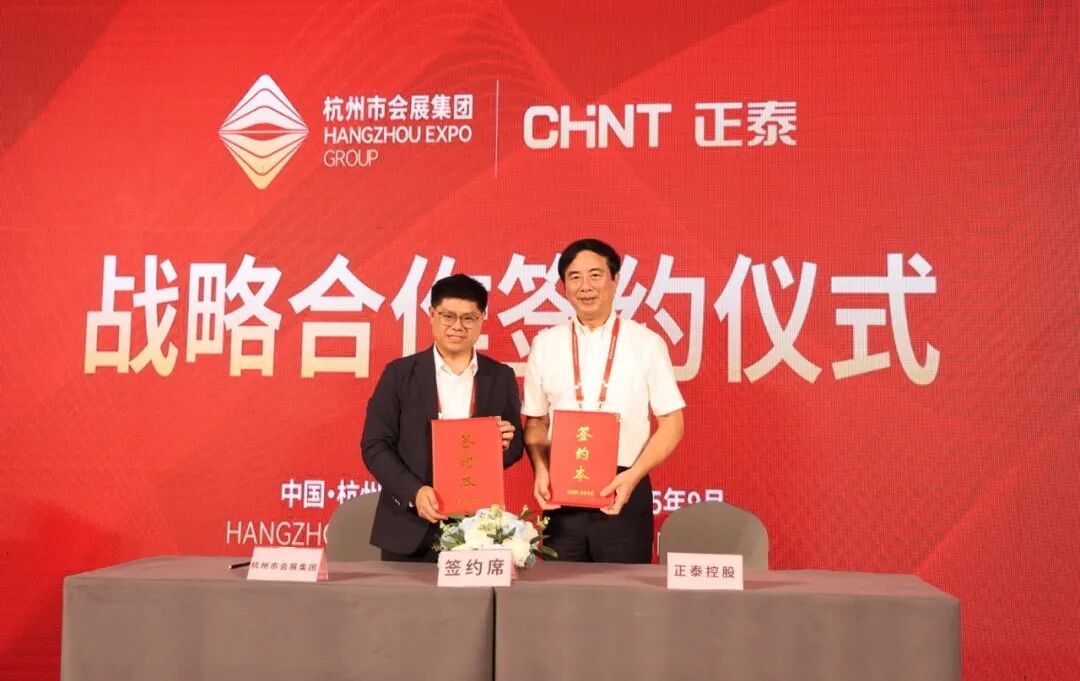 展会上,正泰与杭州市会展集团有限公司在现场举行战略合作框架协议签署仪式,杭州市会展集团有限公司党委副书记、副董事长、总经理李健,正泰集团轮值总裁栾广富现场签约。双方将发挥各自优势,依托全球数字贸易博览会等重大展会活动,开展智慧能源、智能制造、智慧空间等展览展示合作,提升双方品牌影响力。正泰将发挥在智能电气、绿色能源、城市低碳等领域的产品及技术系统解决方案优势,与杭州市会展集团携手探索并打造绿色低碳的智能空间示范项目。此外,双方将结合行业发展趋势与双方业务需求,进一步挖掘并拓展在新能源、智能家居、能效管理、“源网荷储”低碳园区建设、智能电气配套等新业务领域的合作,实现互利共赢。
