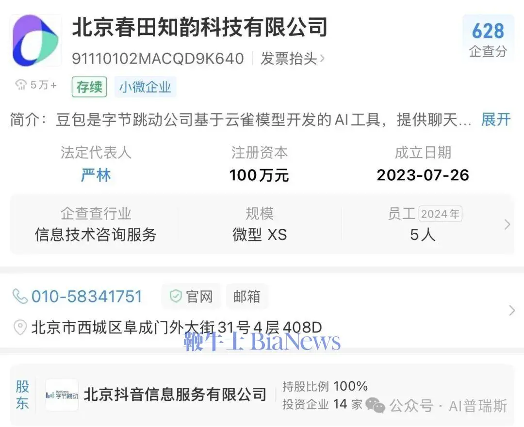 豆包输入法开发公司为春田知韵,字节旗下全资子公司。