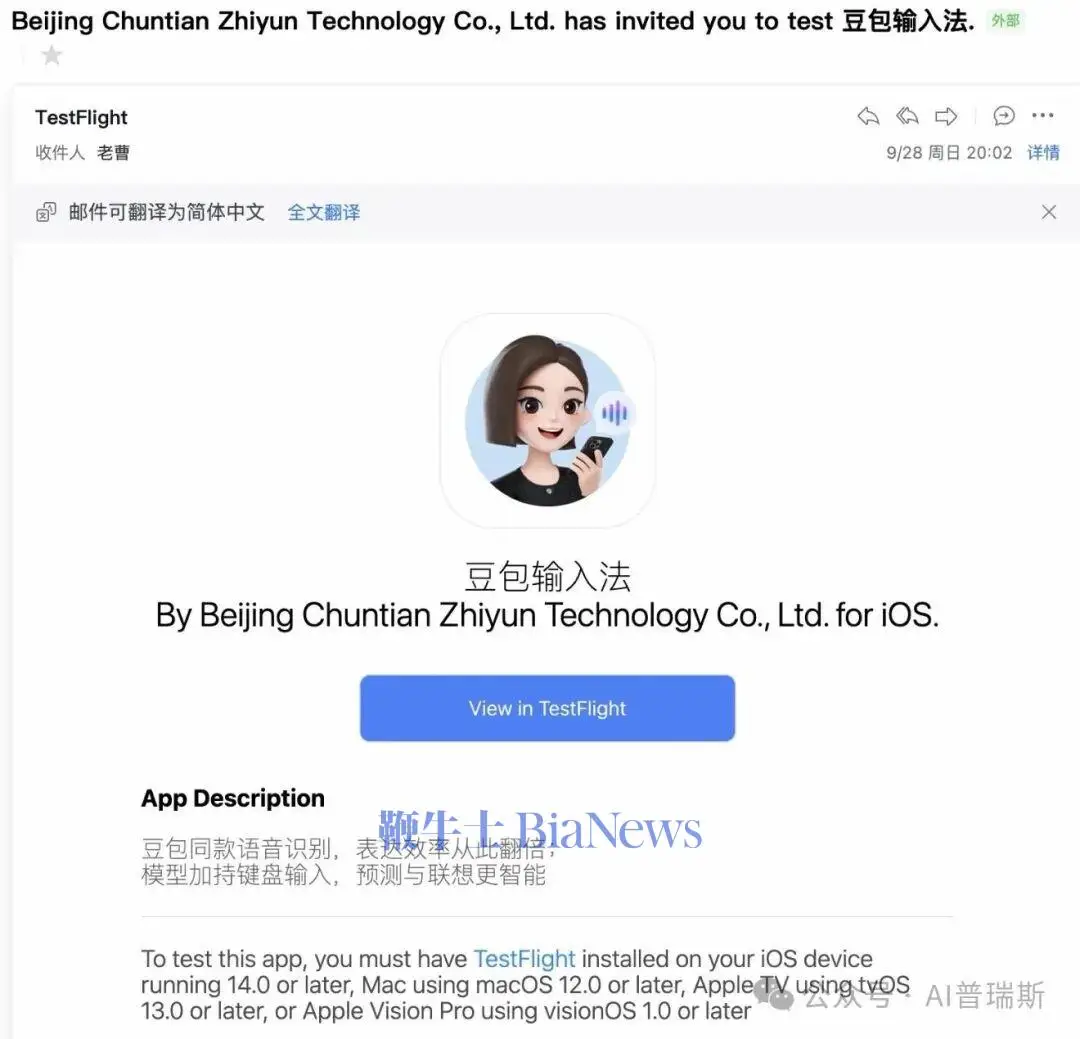9月29日,多名用户在社交网络爆料称,字节旗下的豆包输入法iOS版已经开始内测。