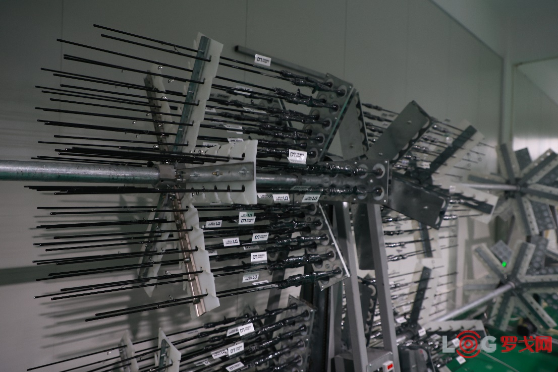 ▲路亚竿在涂刷环氧树脂后,需要旋转风干以保障涂刷均匀。