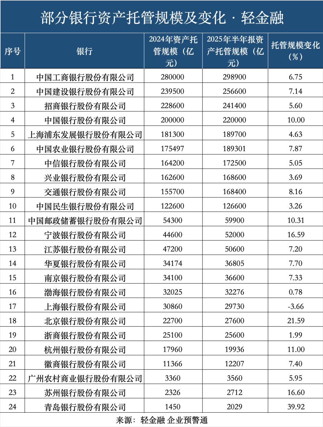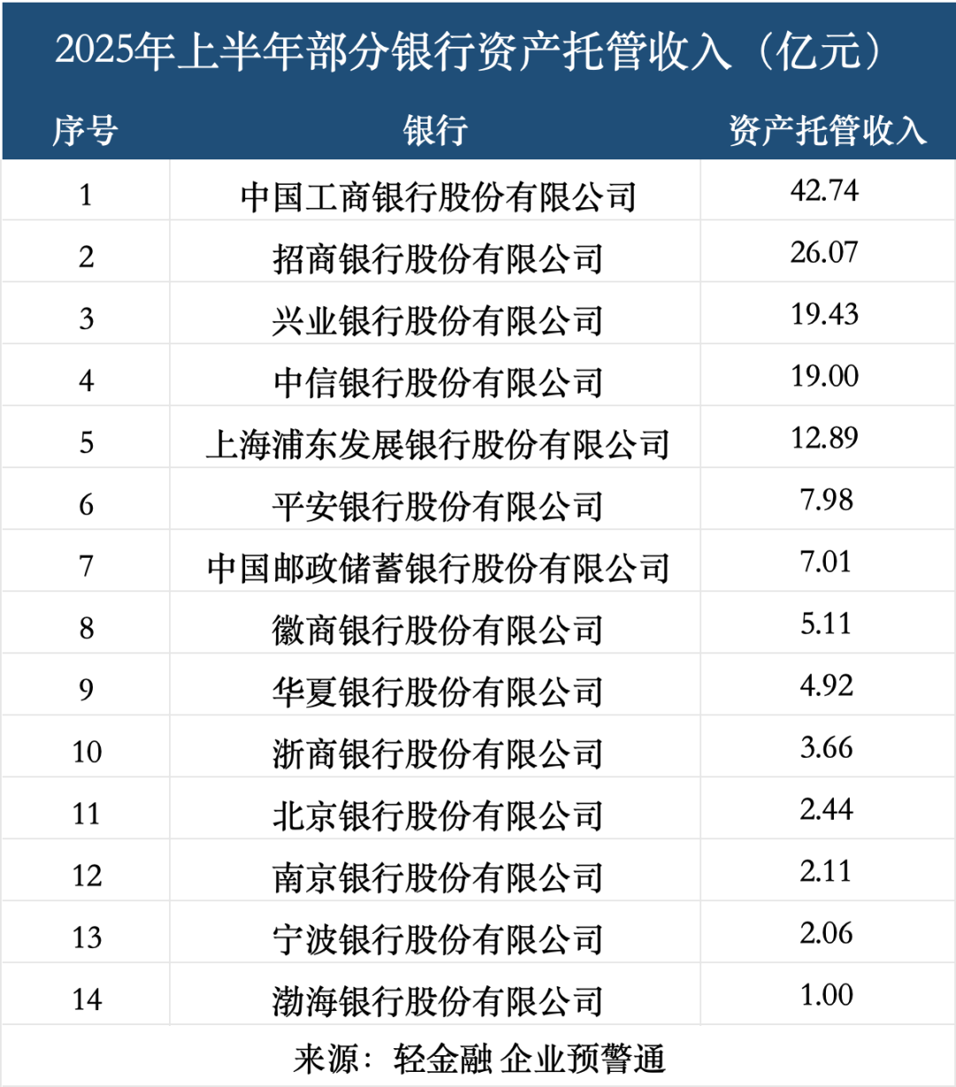 这些银行,共同构成了“中国十大托管银行”。