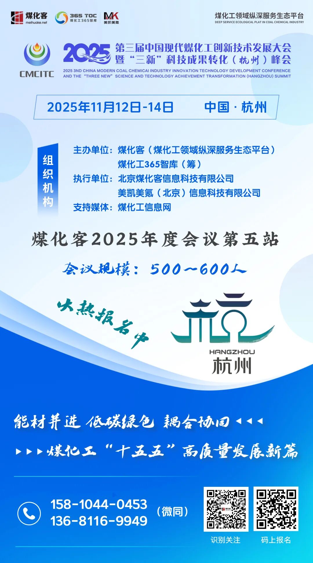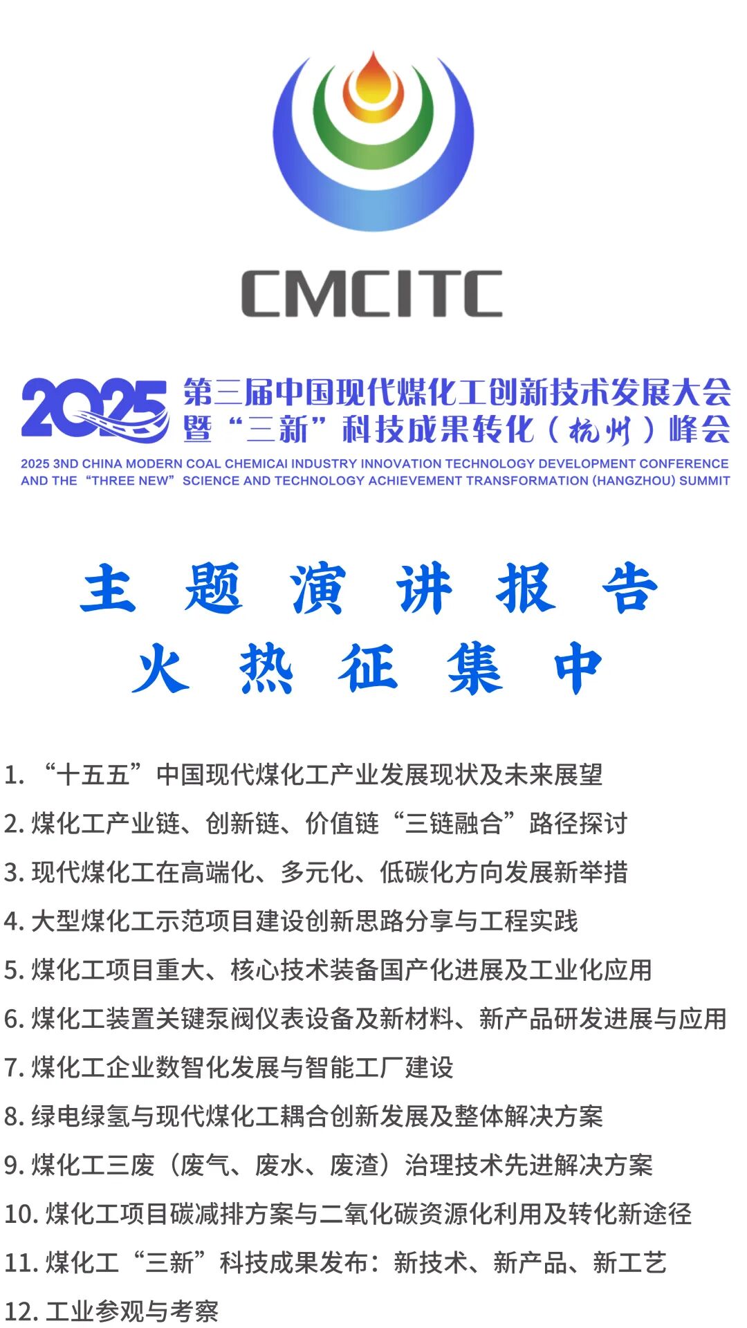 宣传展位预订!主题宣讲占位!2025第三届中国现代煤化工创新技术发展大会与您相约浙江杭州共话煤化工“十五五”高质量发展新篇!