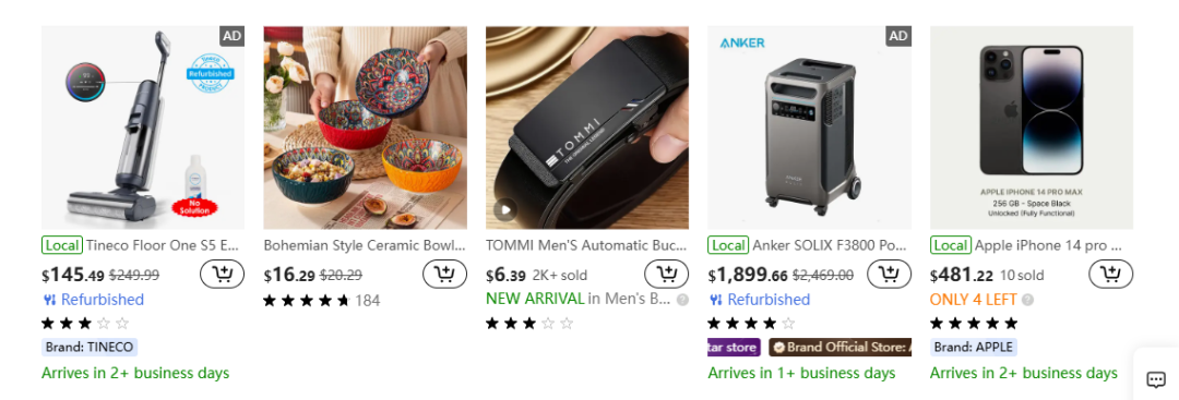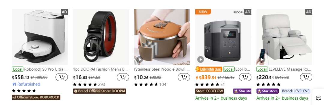 安克,尽管商品定价均显著低于亚马逊同款,但其在Temu上架的全是“翻新品”;电小二,虽然上架的是全新品,但其定价并未与亚马逊拉开差距——某原价209美元的光伏板在Temu上只便宜了13美元;追觅,选择仅上架已在亚马逊停售的入门款产品;趣倍(Tribit)则更为保守,仅在Temu上架了一款商品。