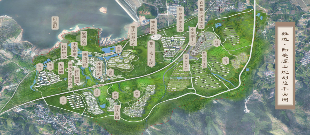 “雅达·松下社区”位于国家级阳羡生态旅游度假区——江苏宜兴雅达国际健康产业园内,地处长三角几何中心,高铁40分钟可达杭州、南京,1小时直达上海,区位优势显著。这里湖山相映,生态优良,森林覆盖率达80%,负氧离子浓度超18000个/cm3,素有“太湖之源”、“天然氧吧”之誉;人文鼎盛,被誉为“教授之乡”、“院士之乡”,拥有深厚的文化底蕴。宋代文豪苏东坡曾在此置田养老,留下“买田阳羡吾将老,从初只为溪山好”的千古诗句。
